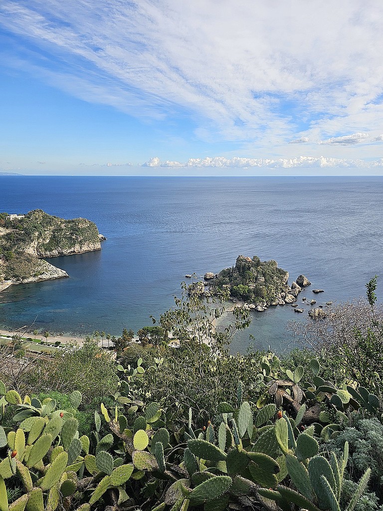 Der Tag startet in der Bam Bar mit der zweitbesten Granita Siziliens (wenn du wissen willst, wo die beste ist, schreib mir gerne). Die Auswahl ist riesig und alles schmeckt super lecker. Dazu gibt es Brioche, genau so wird das typisch sizilianische Frühstück serviert. In Taormina lohnt es sich, durch die Gassen zu schlendern und zwischendurch bei Da Cristina 2 Snacks wie Sciacciata oder Arancini zu holen. Diese lassen sich gut in der Villa Comunale essen, mit Blick auf das Meer und den Ätna. Danach passt als Nachtisch ein frisch gefülltes Cannolo mit Ricotta und Pistaziencreme perfekt dazu. Über die Treppen von Taormina aus geht es zur Chiesa Madonna della Rocca. Der Weg ist kurz, aber der Ausblick über die Küste ist besonders schön. Anschließend lohnt sich der Abstecher nach Castelmola. Der kleine Ort liegt oberhalb von Taormina und bietet ruhige Gassen und weite Ausblicke. In der Bar Turrisi kann man eine Pause einlegen. Die Bar ist bekannt für ihre besondere Atmosphäre und ein Detail, das man vor Ort selbst entdeckt.