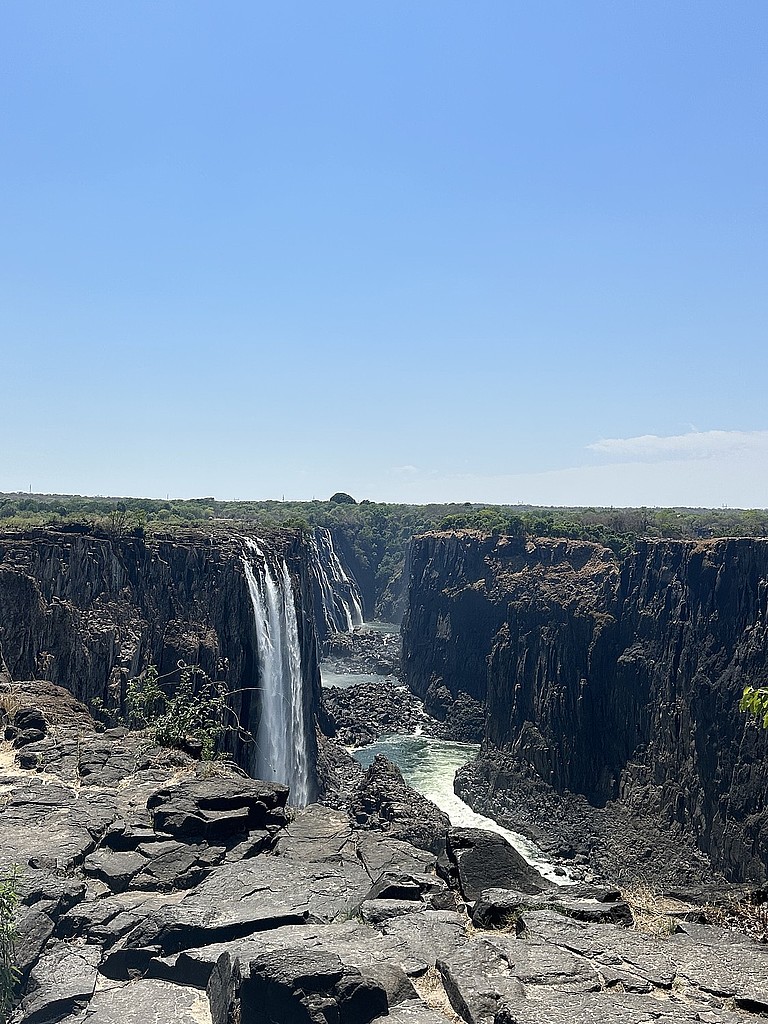 Am kommenden Tag setzten wir per Boot zur Insel Livingstone Island über, von wo aus wir zum berüchtigten Devil’s Pool wateten und schwommen. Direkt an der Abbruchkante der Fälle liegend trennte uns nur eine schmale Felskante vom 100 Meter tiefen Abgrund. Das Tosen des herabstürzenden Sambesi ist ohrenbetäubend, während wir gesichert durch Guides den Blick in die Tiefe wagten – ein surrealer Moment zwischen Angst und purer Freude! Eine weitere absolut einmalige Erfahrung, wenn man den ultimativen Adrenalinkick sucht.