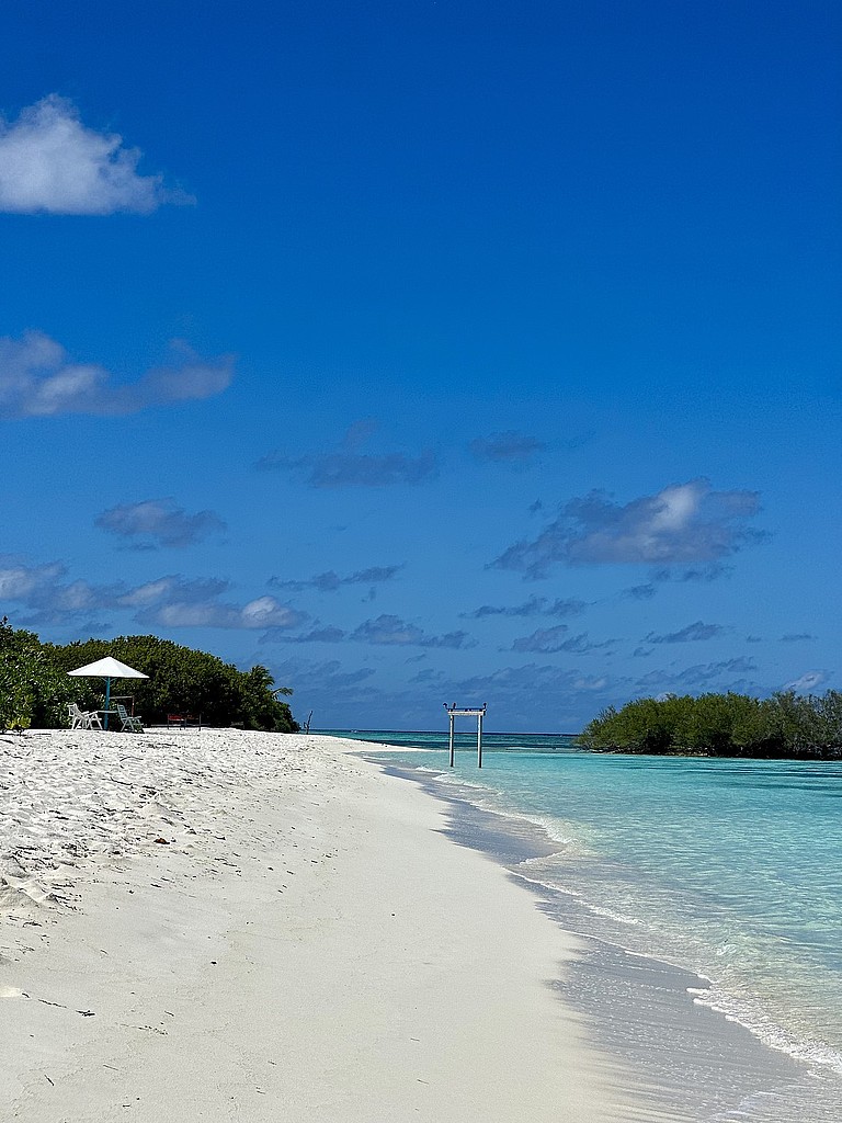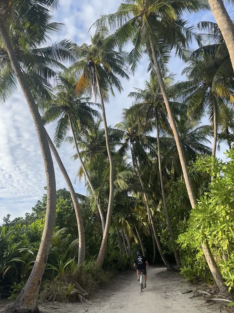 Ein besonderes Highlight der Insel ist die Sandbank, die sich weit ins Meer zieht und zu einem Strandspaziergang einlädt. Bei Ebbe kann man hier kilometerweit laufen oder einfach einen entspannten Strandtag einlegen. Dorthin kommt man entweder zu Fuß oder man leiht sich ein Fahrrad aus. Meist werden diese vom Hotel zur Verfügung gestellt. Wir haben es geliebt, durch den bewachsenen kleinen tropischen Dschungel zu radeln. Gerade diese Insel hat mir gezeigt, die Malediven können so viel mehr sein. Schau gerne in mein Reel über die Insel rein: https://www.instagram.com/p/DKhLqKesAGW/ - https://www.instagram.com/p/DLPMIIDsBx4/