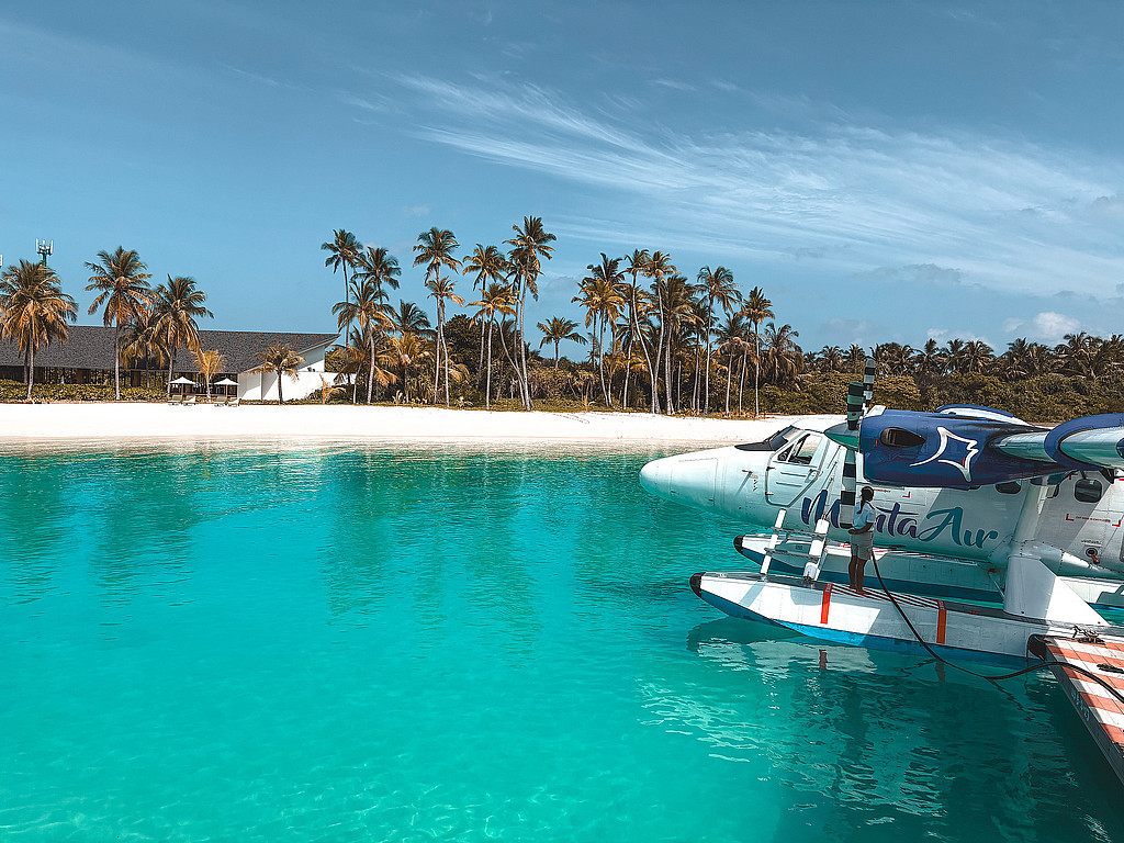 Startend am Flughafen Male ging es zunächst per Minivan zum Seaplane Terminal. Hier bekommt ihr einen Zugang zur Lounge, in dem man auf seinen Wasserflugzeugtransfer warten kann. Mit Blick auf die startenden und landenden Wasserflugzeuge und einem kühlen Wasser in der Hand fällt einem das Warten gar nicht schwer. Kurze Zeit später ging es dann los, wir stiegen in das Wasserflugzeug und hoben ab, ließen den Alltag und den Flughafen hinter uns. Mit Blick auf die unzähligen wunderschönen Atolle ist allein dieser Transfer schon ein absolutes Highlight und spätestens ab diesem Moment fällt der Alltagsstress endgültig ab.