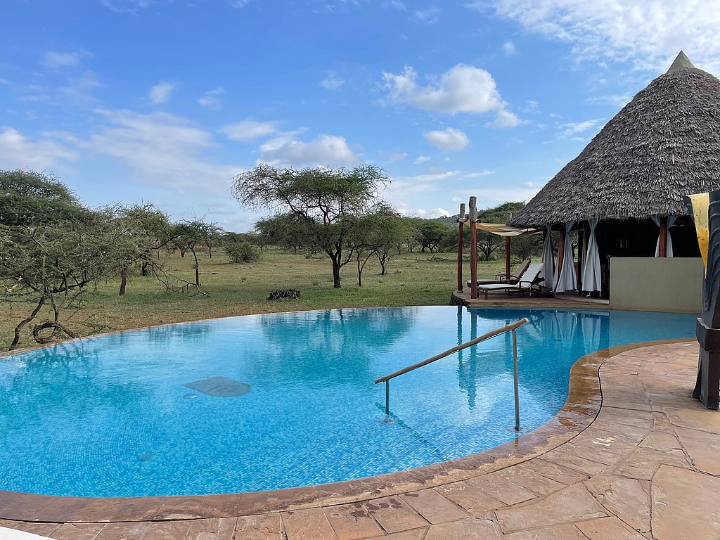 Zum Frühstück auf der Terrasse der Blick auf den Kilimandscharo, was will man mehr.