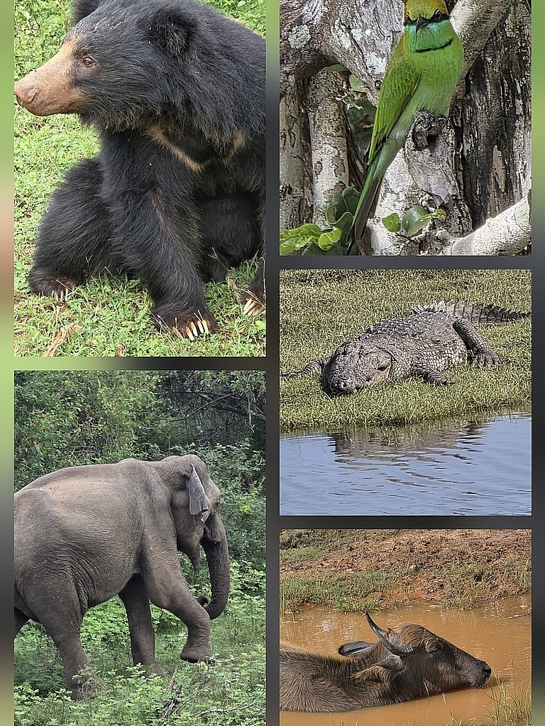 Als erstes hatten wir ein eindrucksvolles Krokodil vor der Linse, was einfach ganz entspannt in der Sonne gelegen hat. Da die Fahrer im Park gut miteinander vernetzt sind, wird untereinander mitgeteilt, wo es welche Tiere gerade zu beobachten gibt. Wir haben über Wasserbüffel, Affen, Echsen und Vögel alles gesehen. Ein besonderer Moment, war ganz dicht an unserem Jeep die Begegnung mit einem Elefanten und einem Schwarzbären. Es war ein aufregendes Erlebnis, diese tollen Tiere aus der Nähe beobachten zu können. Das Ceylonhuhn, das offizielle Nationaltier Sri Lankas, ein farbenprächtiges Huhn, konnten wir auch mehrfach bewundern. Nur einen Löwen konnten wir leider nicht ausfindig machen. Wer ein Fernglas dabei hat, hat noch einen kleinen Vorteil, weil man nicht an alle Tiere ganz dicht herankommt. Diesen Ausflug kann ich wirklich sehr empfehlen. Auf der Tour dorthin, fährt man durch eine wunderschöne Landschaft, auf einer sehr neuen und gut ausgebauten Autobahn.