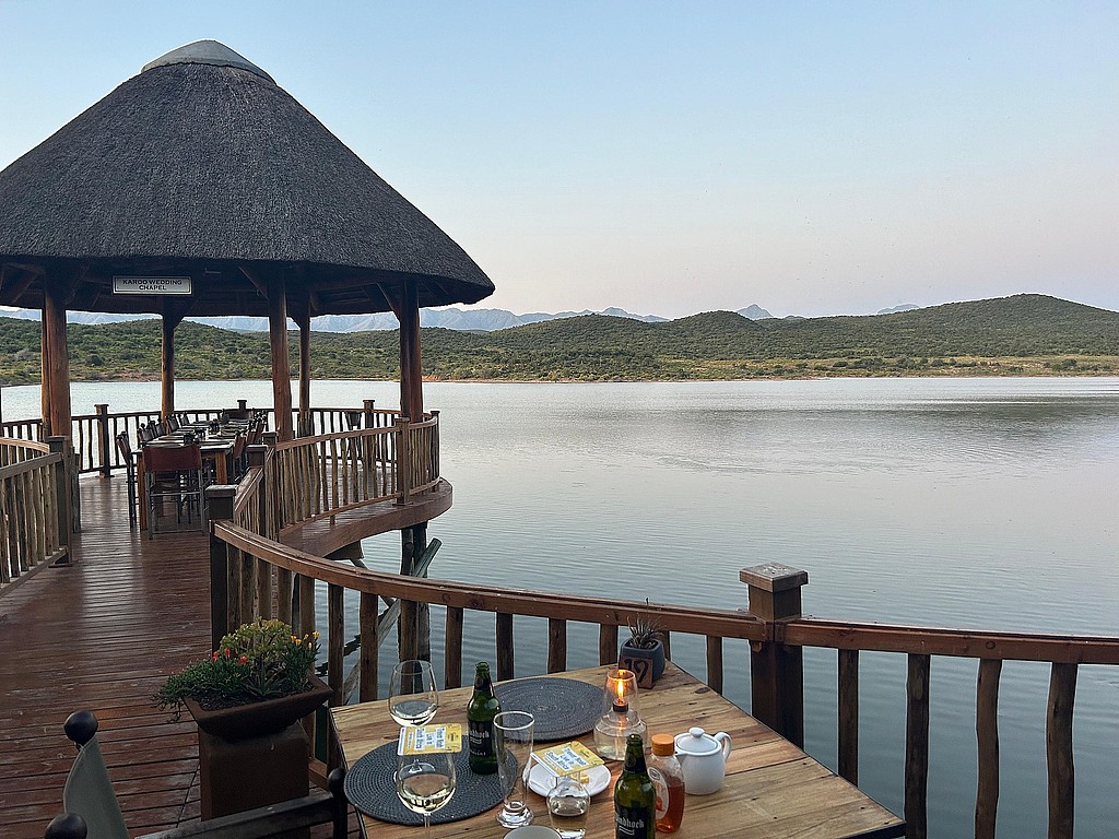In Oudtshoorn angekommen, erwartete uns eine wunderschöne Lodge direkt an einem Wasserloch. Schon beim ersten Anblick war klar: Das wird ein besonderer Aufenthalt. Am nächsten Morgen begann unser Safari-Abenteuer – und das direkt vor der eigenen Zimmertür, wo uns Nilpferde im Wasserloch begrüßten. Während der Pirschfahrt konnten wir unter anderem Giraffen, Antilopen, Nashörner und Löwen beobachten. Einige Tiere blieben allerdings verborgen – oder, wie mein Mann scherzhaft meinte, lag es vielleicht doch an mir. (Mit mir hat man nämlich leider nie Glück, Tiere in freier Wildbahn zu finden). Ergänzt wurde das Ganze durch eine Erdmännchen-Tour, die vor allem durch Niedlichkeit in Erinnerung geblieben ist.