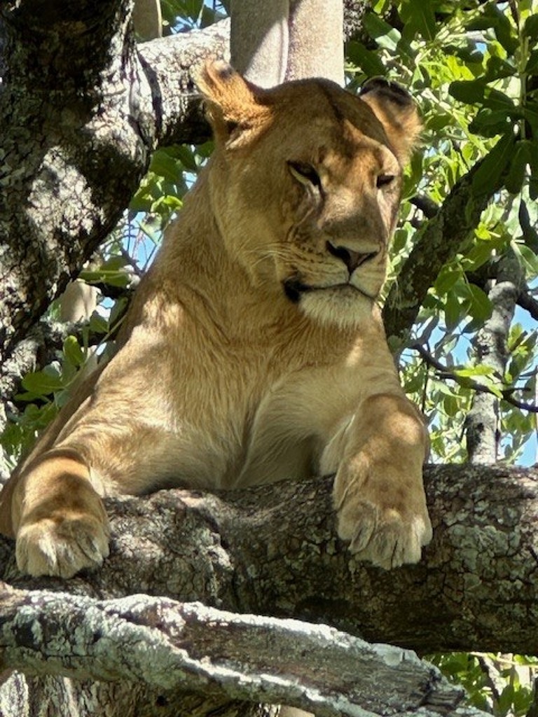 Das Funkgerät bekommt ein Signal, der Fahrer gibt Gas. Ein Löwenpärchen liegt nebeneinander im Gras. Es wird fotografiert. Nach ein paar Minuten drehen alle Autos wieder ab, außer wir. Unser Guide Emmanuel weist uns an, die Handys auf Video zu schalten und auf sein Go zu warten. Da, der männliche Löwe steht auf und wir werden Zeuge des Liebesaktes, Wahnsinn. 7 Tage alle 15 Minuten findet dieses Spektakel statt und ich war dabei !!!!