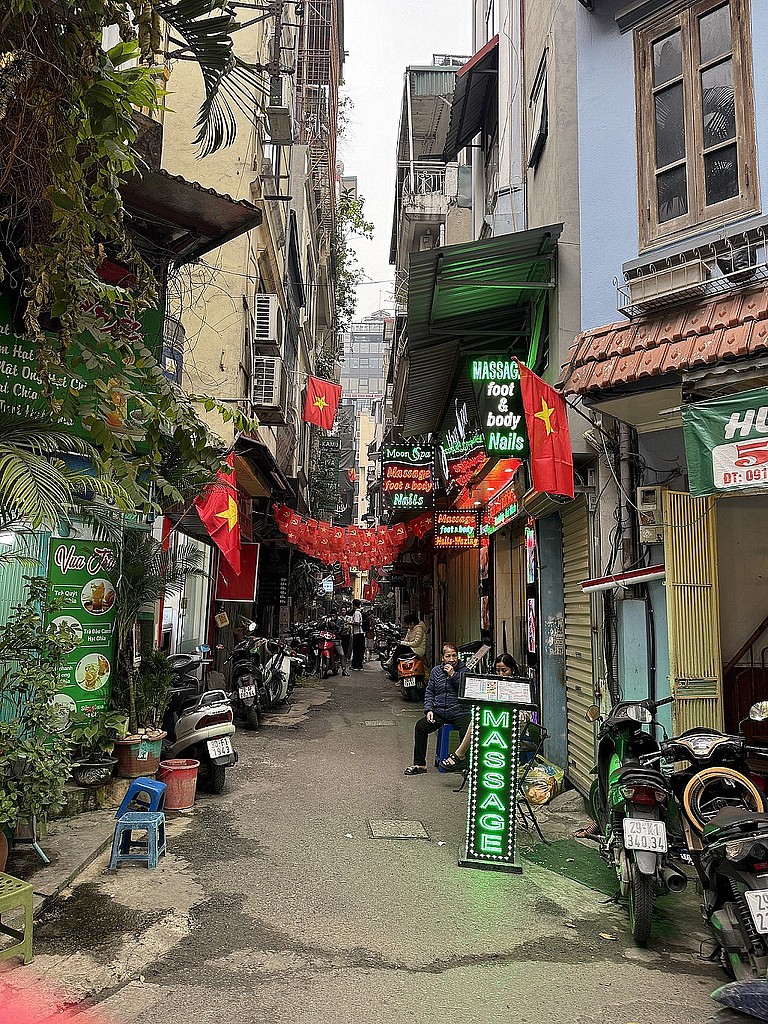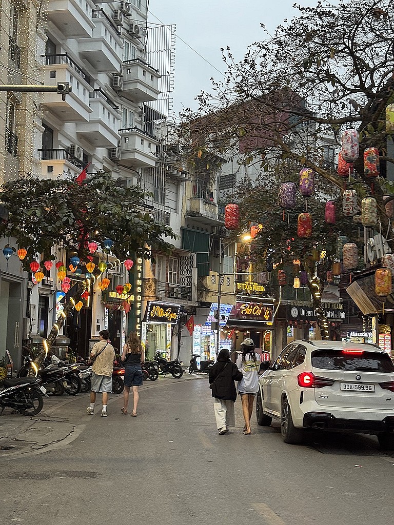 Einen von Leichtigkeit und Frohsinn geprägten Abend erlebten wir in der berühmten Hanoi Train Street. Zwischen schmalen Häuserreihen verläuft hier eine aktive Bahnstrecke. Direkt daneben gibt es zahlreiche kleine Bars, Cafés und Restaurants. Man sitzt entspannt mit einem Getränk in der Hand, während wenige Zentimeter entfernt ein Zug vorbeifährt. Teilweise müssen Tische und Stühle kurzzeitig beiseite geräumt werden. Die Atmosphäre war locker und fröhlich. Menschen aus aller Welt saßen zusammen, lachten, aßen, tranken und genossen einfach den Moment. Genau diese leichte, gesellige Stimmung machte diesen Abend zu einem der besonderen Augenblicke der Reise.